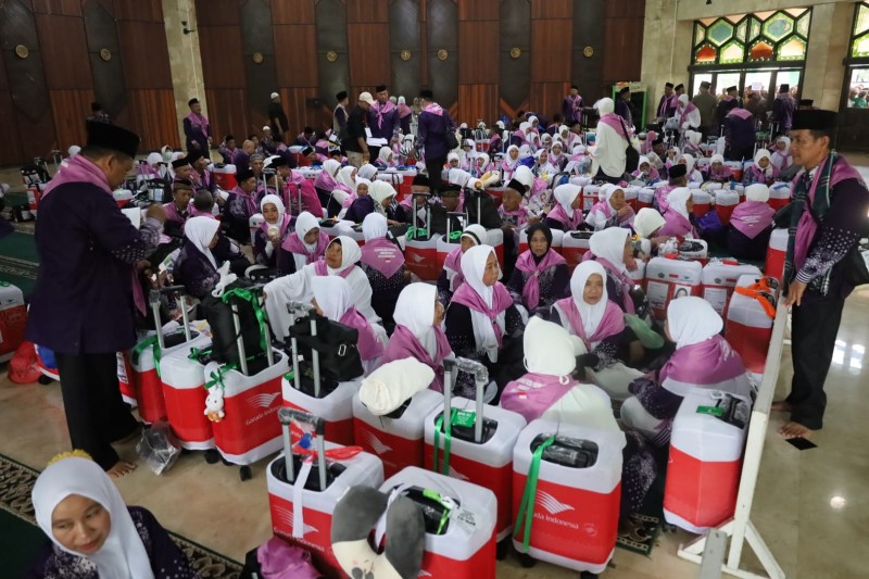 Suasana haru menyelimuti halaman parkir Masjid Agung Sultan Sulaiman, di mana ratusan pengantar yang merupakan kerabat dekat dan sanak saudara para jamaah tampak memadati areal tersebut. Mereka melambaikan tangan dengan penuh harapan dan doa untuk kelancaran perjalanan keluarganya menuju Tanah Suci.