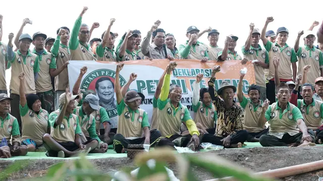 Gabungan kelompok tani yang bersatu di bawah bendera Petani Pejuang Papera deklarasi dukung Prabowo Subianto sebagai Presiden 2024. (Liputan6.com)