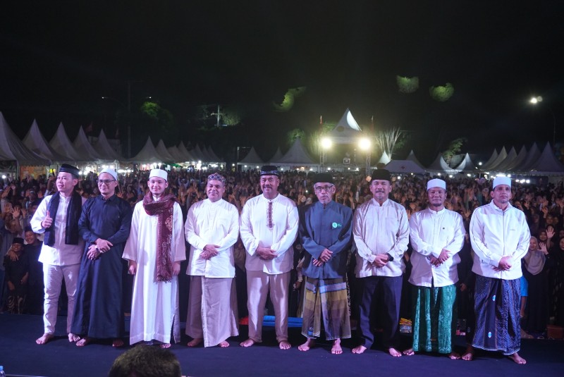 Haddad Alwi, musisi religi yang dikenal luas melalui karya musiknya yang sarat dengan pesan-pesan Islami, menjadi pusat perhatian ribuan jamaah yang hadir. Para jamaah tidak menyia-nyiakan kesempatan untuk ikut melantunkan shalawat bersama penyanyi religi yang juga berkarir sebagai aktor tersebut.